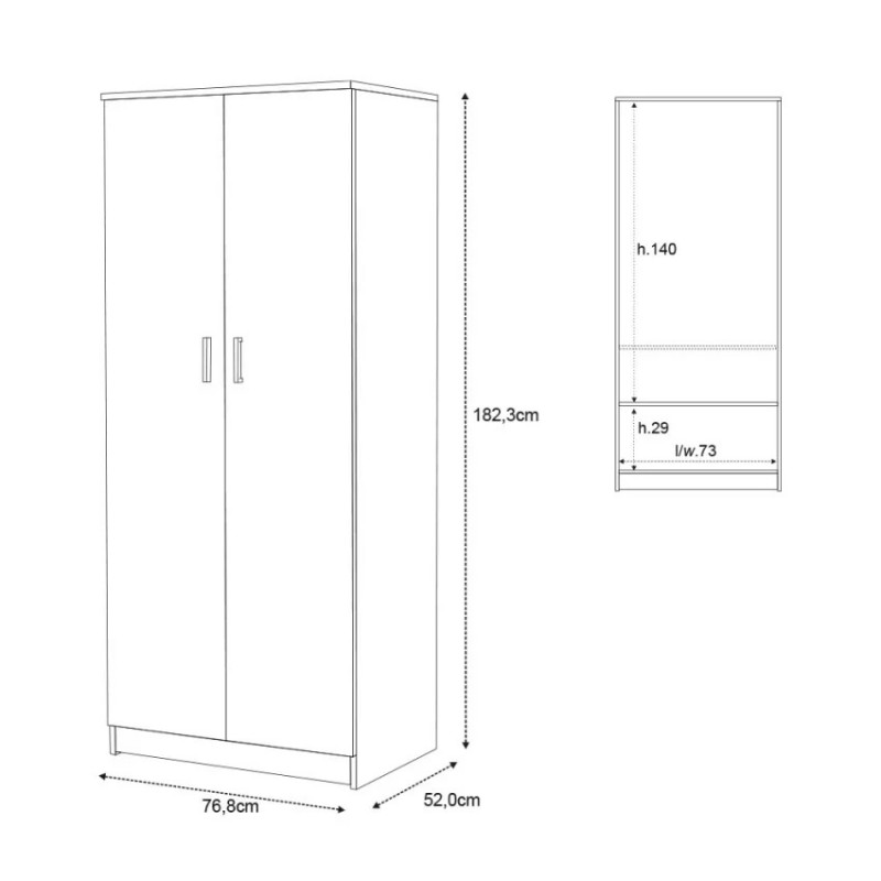 Armadio 2 ante 2 cassetti in kit bianco Dimensioni: H 182 - L 77 - P 52 cm Spedizione gratuita in 7/10 giorni