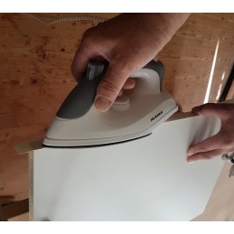 -Scorriamo lentamente col ferro da stiro sul bordo non soffermandoci troppo per evitare di bruciarlo ne procedendo troppo velocemente per evitare che la colla non si sciolga adeguatamente.
