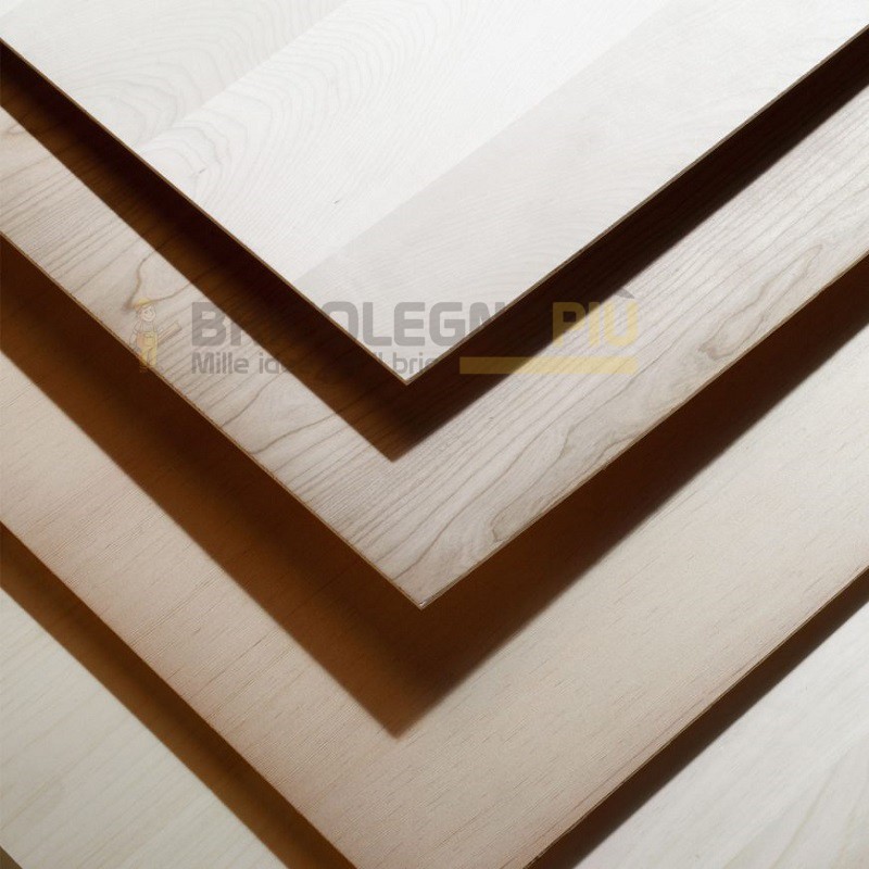 Pannelli dello spessore di 4 mm a 5 strati, realizzati con anima in compensato di pioppo, rivestiti su un lato con tranciato di legno pregiato e sul secondo lato (retro) con fogli di tranciato di bilanciatura. Lo spessore del tranciato è normalmente di 0,6 mm.