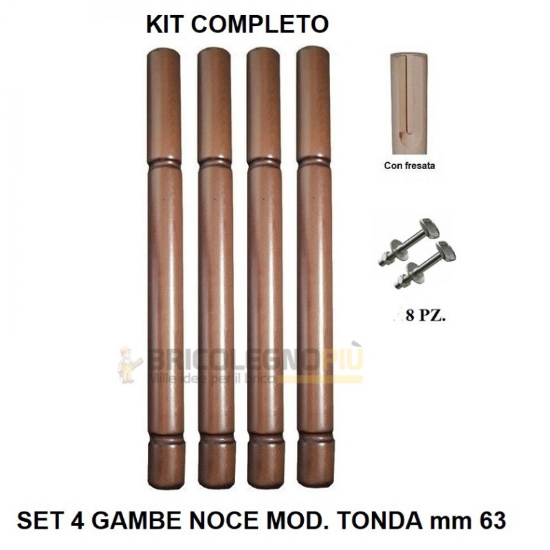 Set 4 gambe tavolo in legno di faggio verniciate noce modello Tonda mm 70