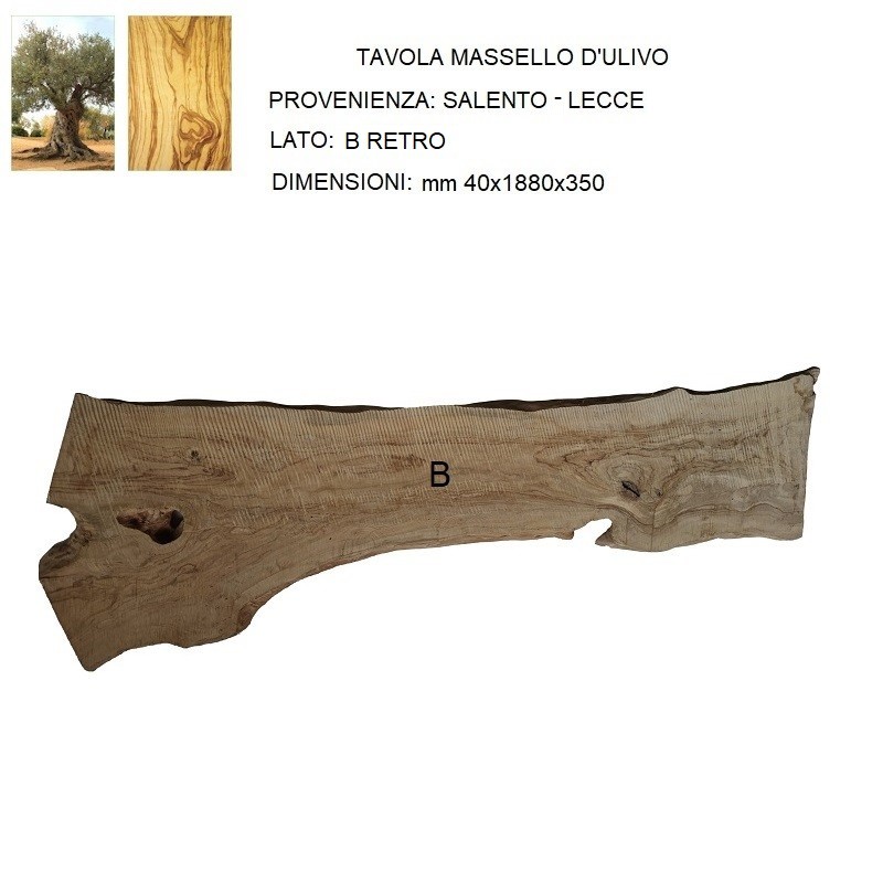 Tavola non refilata grezza in legno di Ulivo mm 40x1880x350